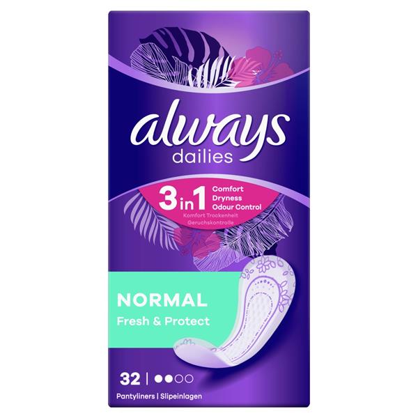Always Dailies Fresh Protect Panty Liners Normal 32 Pack