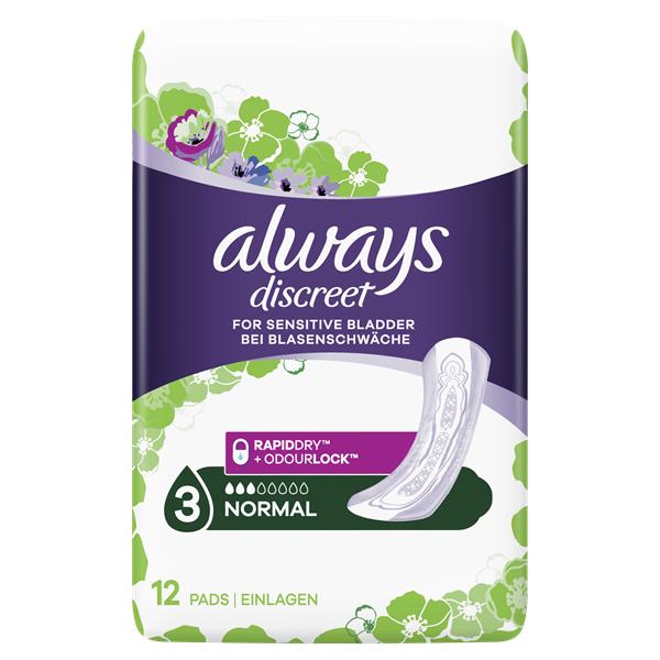 Bladder leaks shouldn't hold you back. Always discreet incontinence pads normal give you secure protection you can barely feel. Designed to fit your body and your life, they offer strong protection with a unique ultra-Thin absorbent core, so you can walk with confidence and not worry about leaks. If sneezing or laughing cause: bladder leaks, always discreet incontinence pads normal offer ideal protection.