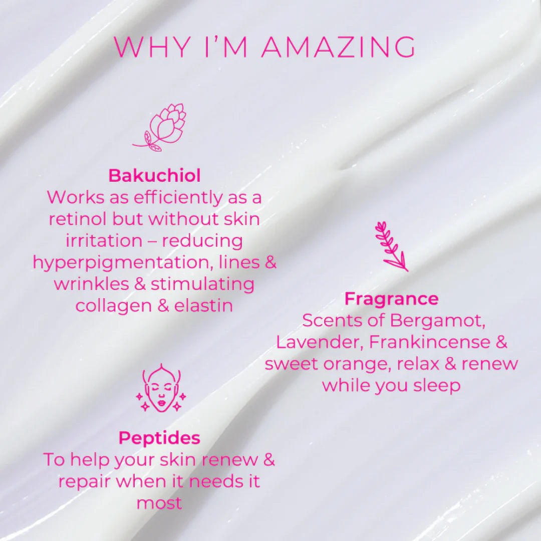 Ella & Jo Relax & Renew Night Cream is a luxurious overnight moisturiser designed to nourish, repair and renew the skin while you sleep. Powered by Bakuchiol, a natural retinol alternative, this multi-tasking cream helps smooth fine lines, improve texture and restore a plump, radiant complexion by morning.