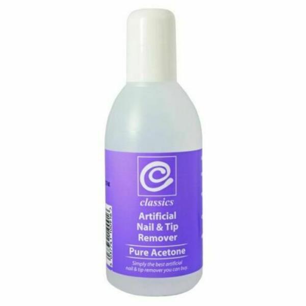 Classics artificial nail & tip remover 100% pure acetone 150Ml. 100% pure acetone for ultra fast removal of acrylic gel and false nail tips. Remove false nails, gel, acrylic with ease. Artificial nail & tip remover is also ideal for removing glitter nail varnish products