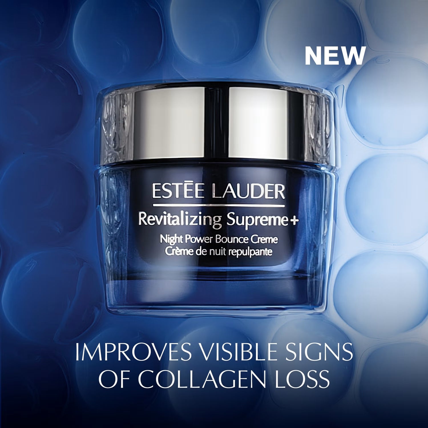 Wake up to visibly firmer, more radiant skin with the Estée Lauder Revitalizing Supreme+ Night Power Bounce Crème – a breakthrough overnight moisturiser designed to plump, smooth, and lift while you sleep.