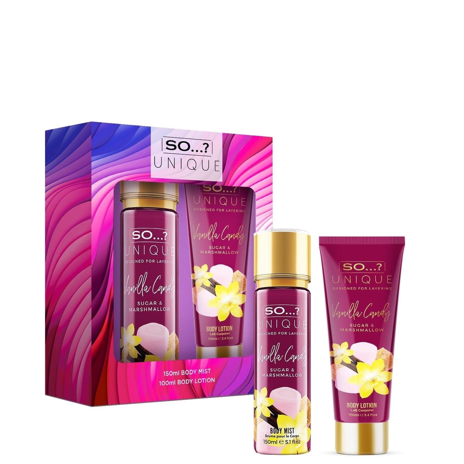 Sweet, warm, and irresistibly indulgent — the SO…? Unique Vanilla Candy Gift Set is a must-have for anyone who loves comforting gourmand scents. This deluxe duo pairs a rich, moisturising body lotion with a matching body mist, creating a perfectly layered fragrance experience that lasts all day.