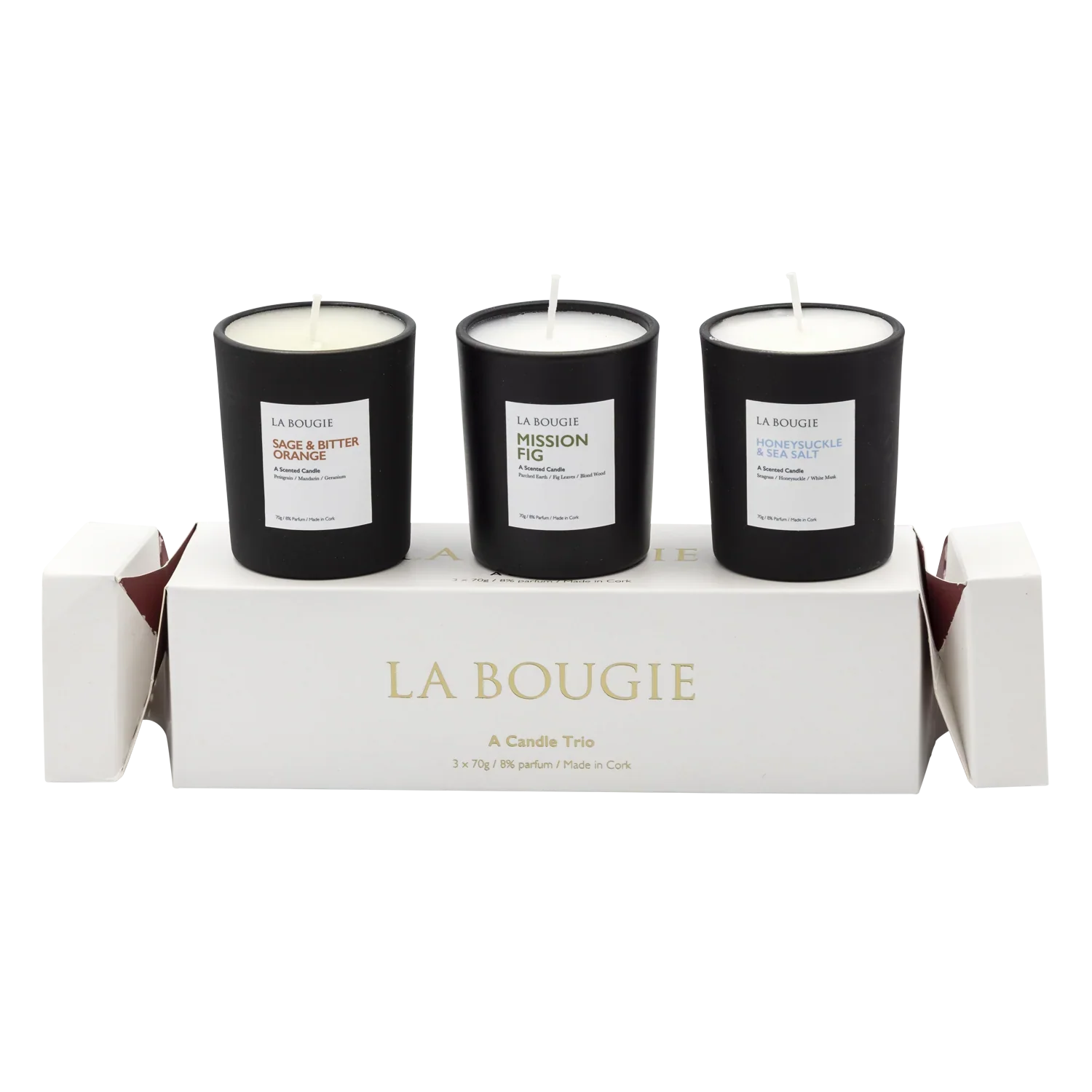 A cracker of a festive gift set, featuring three of La Bougie’s most-loved fragrances in perfectly sized travel candles.