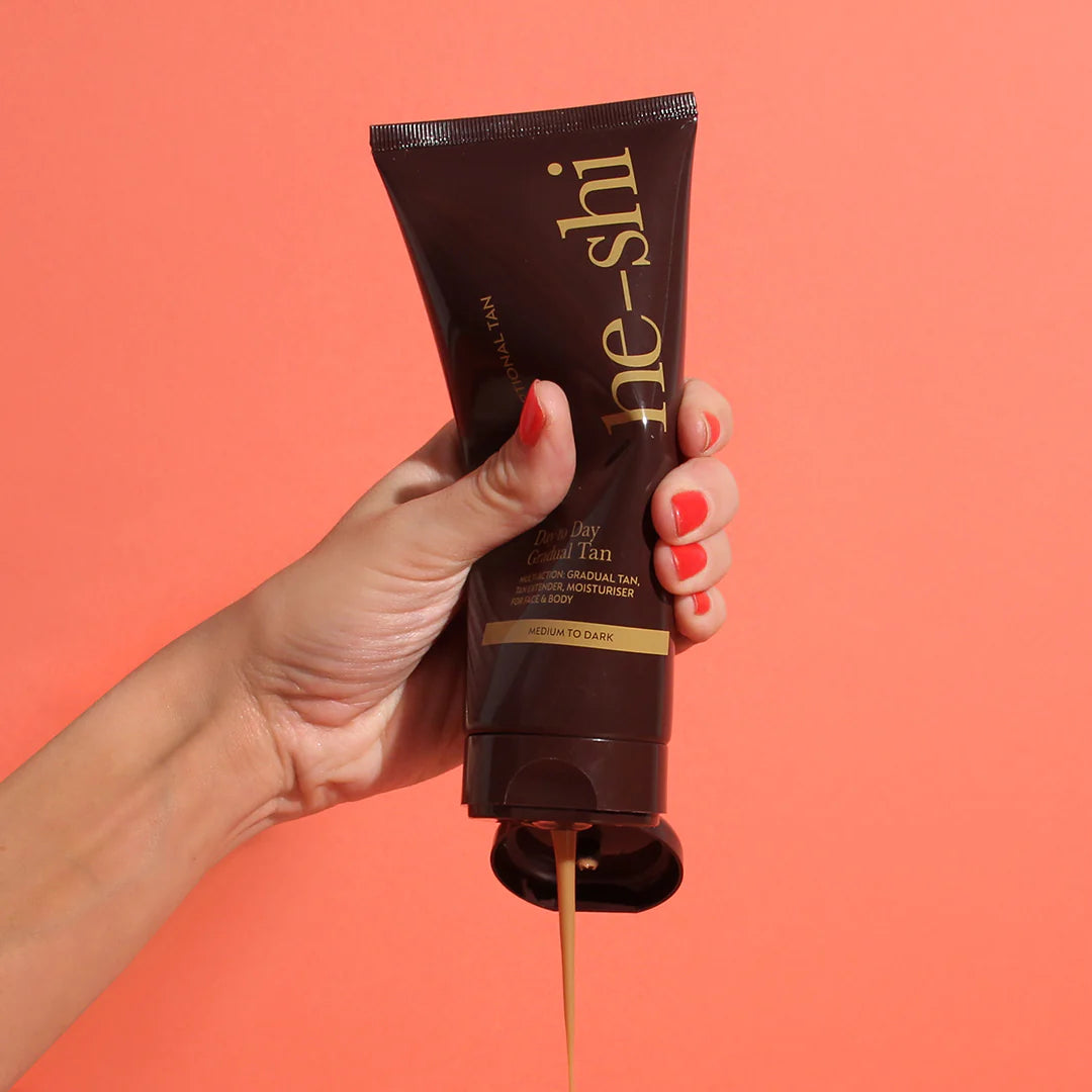 Achieve a radiant, buildable bronze with the He-Shi Dark Day to Day Gradual Tan 200ml, now available at McGorisks Pharmacy. This luxurious tanning lotion combines advanced tanning technology with rich skincare benefits to deeply hydrate while enhancing your natural glow. Ideal for medium to darker skin tones or anyone looking to deepen or extend an existing tan, it melts effortlessly into the skin with no sticky residue or transfer.