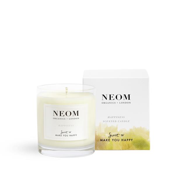 Hand-poured into a sleek glass vessel, this 1-wick candle is a stylish addition to any room, effortlessly enhancing your décor while infusing the air with its delightful fragrance. Whether you're unwinding after a long day or creating a welcoming ambiance for guests, the Neom Organics Happiness Scented Candle sets the perfect mood for moments of relaxation and rejuvenation.