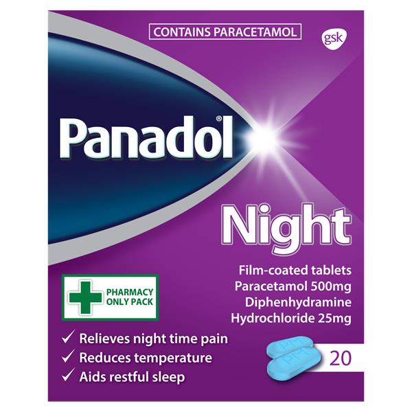 Panadol Night is ideal for tackling nighttime discomfort caused by colds, flu, muscular aches, backache, headaches, toothaches, and period pain. Its dual-action formula works to ease your symptoms while promoting relaxation and rest, so you can wake up feeling refreshed.