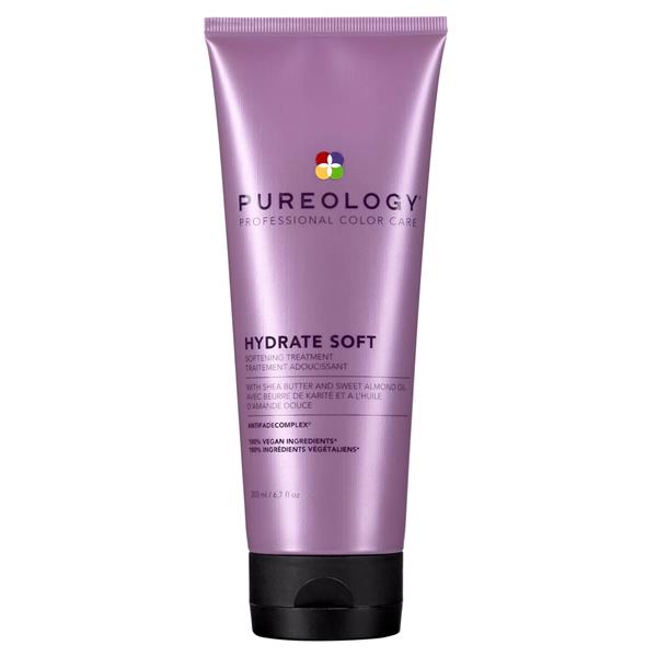 Pureology hydrate soft softening treatment nourishes and softens dry, color-Treated hair with key ingredients shea butter and almond oil and a signature aromatherapy blend of red fruits, rose, and amber. Pureology is the #1 professional color care brand in the us offering products that feature 100% vegan formulas and are sulfate-Free, paraben-Free, mineral oil-Free, and free of animal products or by-Products, and animal testing. Our patented antifade complex is infuse: into every formula to protect color vibrancy and ensure lasting color payoff. Sunflower seed, a uv filter, and vitamin e fight color-Depleting environmental effects while ensuring lasting shine. Our dual-Benefit formulas provide color protection and customized care to address individual hair needs. Benefits nourishing treatment adds touchable softness and extraordinary color protection zerosulfate , 100% vegan formula aromatherapy blend of red fruits, rose, amber