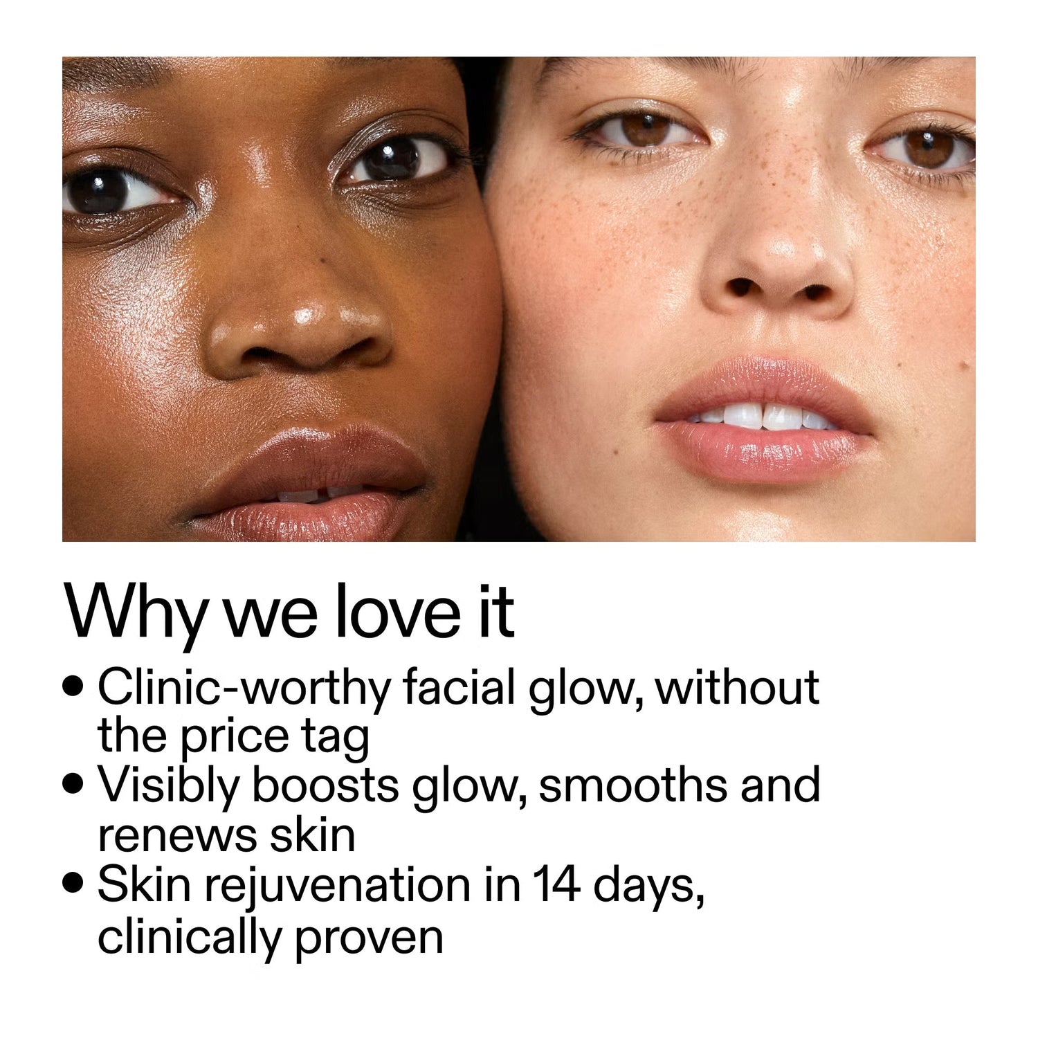 1% Exfloactive™ and Prickly Pear Extract gently exfoliate to refine texture, while 1% Kollaren™ and Ectoin work to soften, soothe, and strengthen the skin barrier. The creamy, lightweight texture melts effortlessly into the skin, delivering a hydrated, facial-like glow - no clinic required.