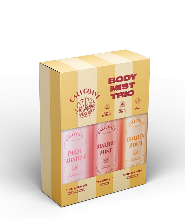Cali Coast Body Mist Blends Gift Set is the ultimate fragrance collection inspired by sun, sand, and coastal vibes. This trio of refreshing body mists captures the carefree spirit of California, making it a perfect treat for yourself or a thoughtful gift for someone special.