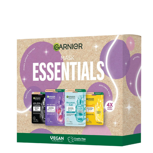 Treat skin to four targeted sheet masks in the Garnier Mask Essentials Giftset—a quick, effective routine to purify, hydrate, brighten and smooth.