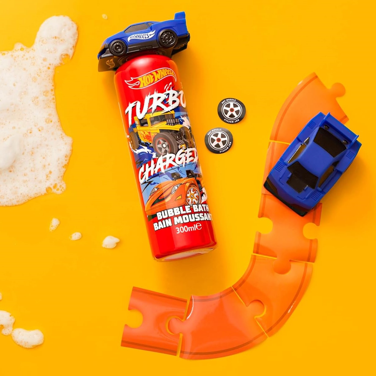 - Bubble Bath (300ml): Melon-scented formula with a cool 3D Hot Wheels car topper.